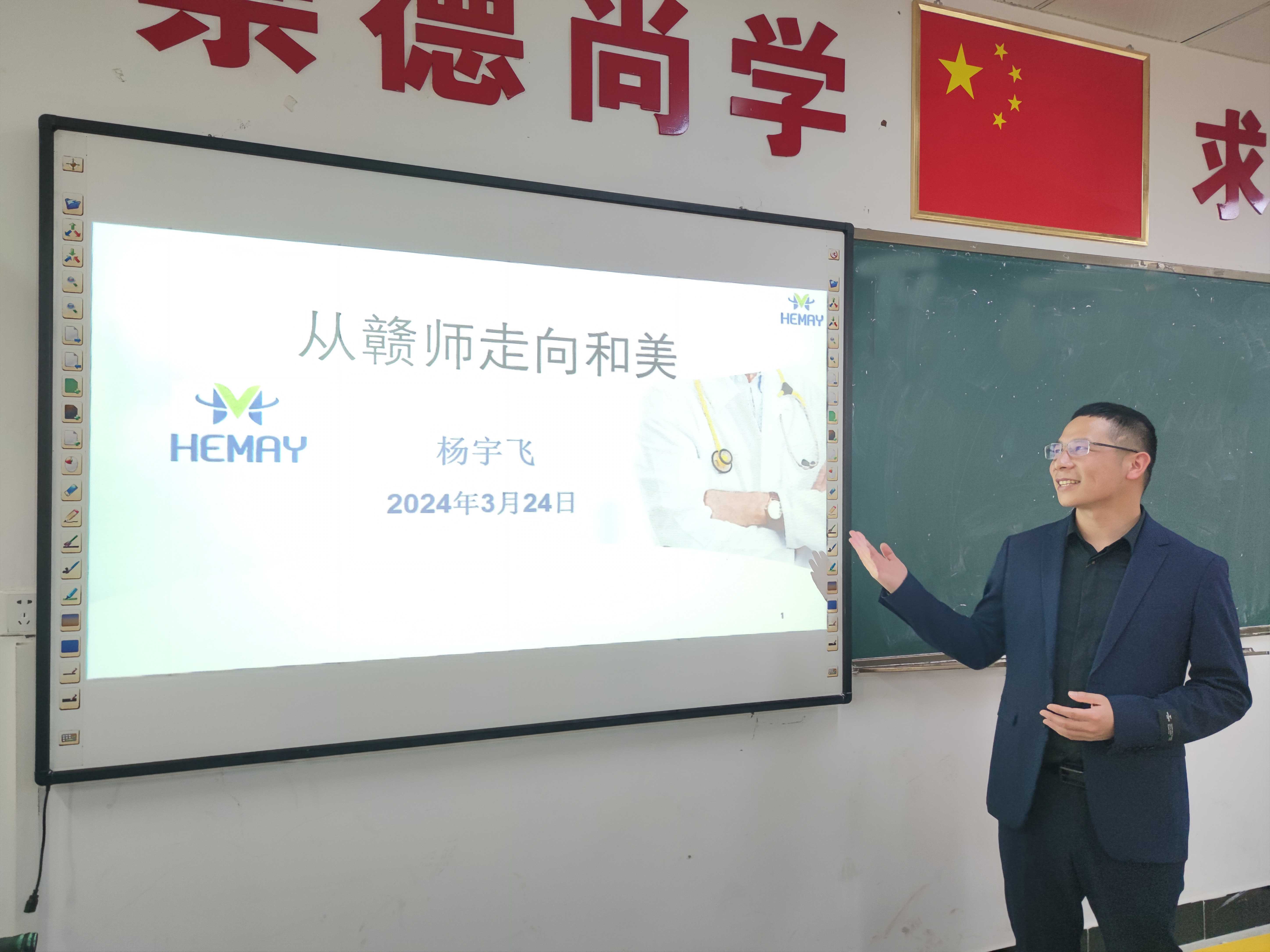 宣讲会结束之后,校友杨宇飞以“从赣师走向和美”为主题,讲述了自己在赣师的求学时光,并分享了从学校走向工作岗位所经历的懵懂与成熟、从实验室研究员到技术经理的成长经历。从杨学长的工作经历中,同学们深刻体会到不论在哪里工作,核心都是“持续学习”,只有不断地学习和提升自己,才能让自己的职业发展之路走得更远、更顺。同学们表示通过此次讲堂,使自己对未来职业规划有了更加清晰的认识。