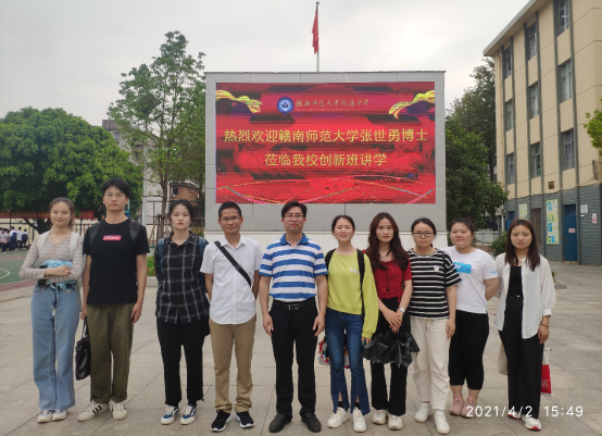 近日,化学化工学院张世勇博士带领学院学科教学研究生赴赣南师范大学附属中学开展了2020级学科教学(化学)硕士生见习、2018级化学专业教育实习调研和附中创新班讲学“三位一体”的教研活动。