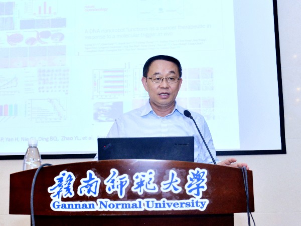 报告会上,赵宇亮院士以“纳米材料生物学效应与纳米药物”为题,详细介绍了其课题组20年来在纳米材料毒理学和纳米药物中所取得的研究成果,阐述了纳米技术的发展基础,讲述了纳米材料生物效应的五大生物效应,包括易于穿过生物屏障、吸附体内蛋白、合成复合物且易进入细胞、产生活性氧以及纳米材料在生物体内的去除机理等,并且绘制了纳米材料在体内的生物图谱。赵宇亮院士还重点介绍了目前其课题组在癌症治疗方面的研究成果,详细介绍了其在生物医药领域的重要工作进展。