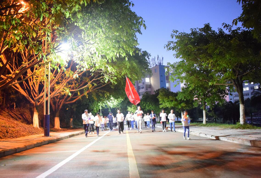 晚上7时起,师生们从化学楼出发,途径学校南门、体育学院、校医院、人文社科中心、南苑食堂、美术学院,最终返回化学楼。夜跑途中,师生们互相交流学习生活体会,进一步加深了解,增进了感情。