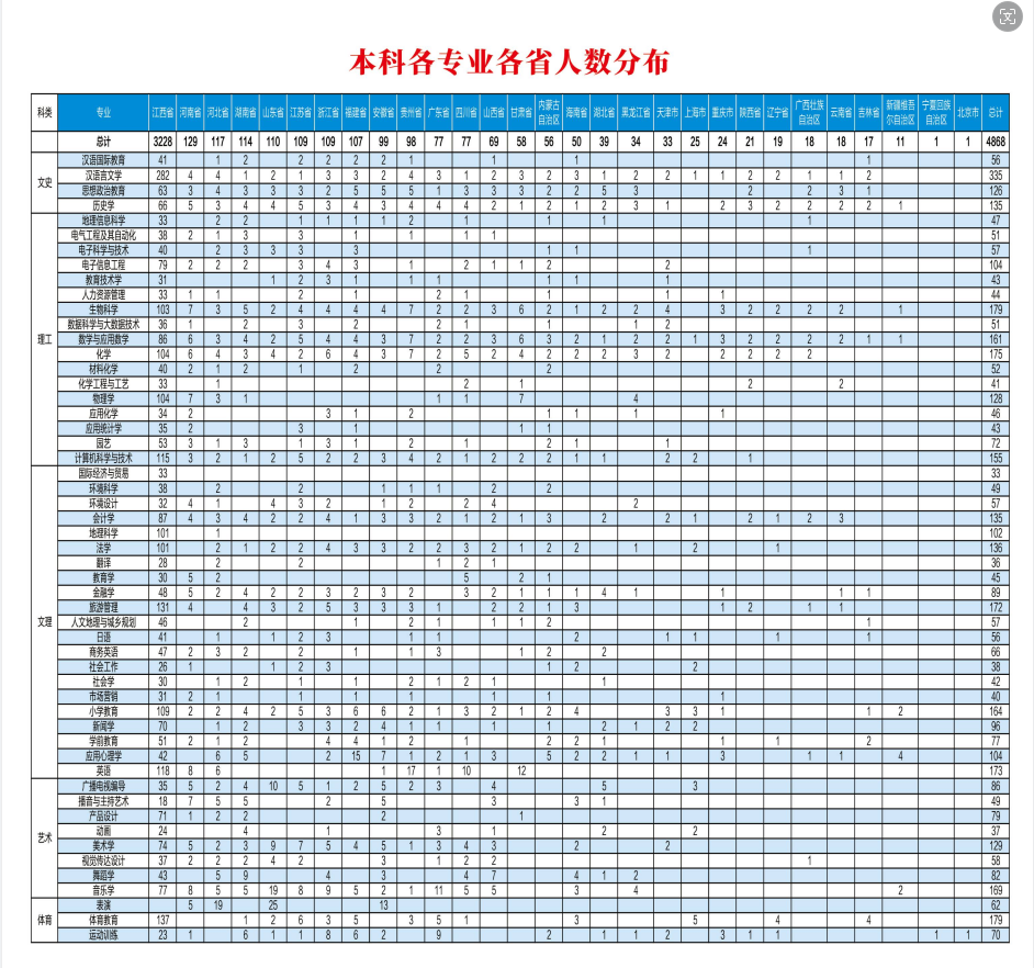 层次 | 毕业专业 | 总人数 | 男 | 女 | 省内 | 省外 |
