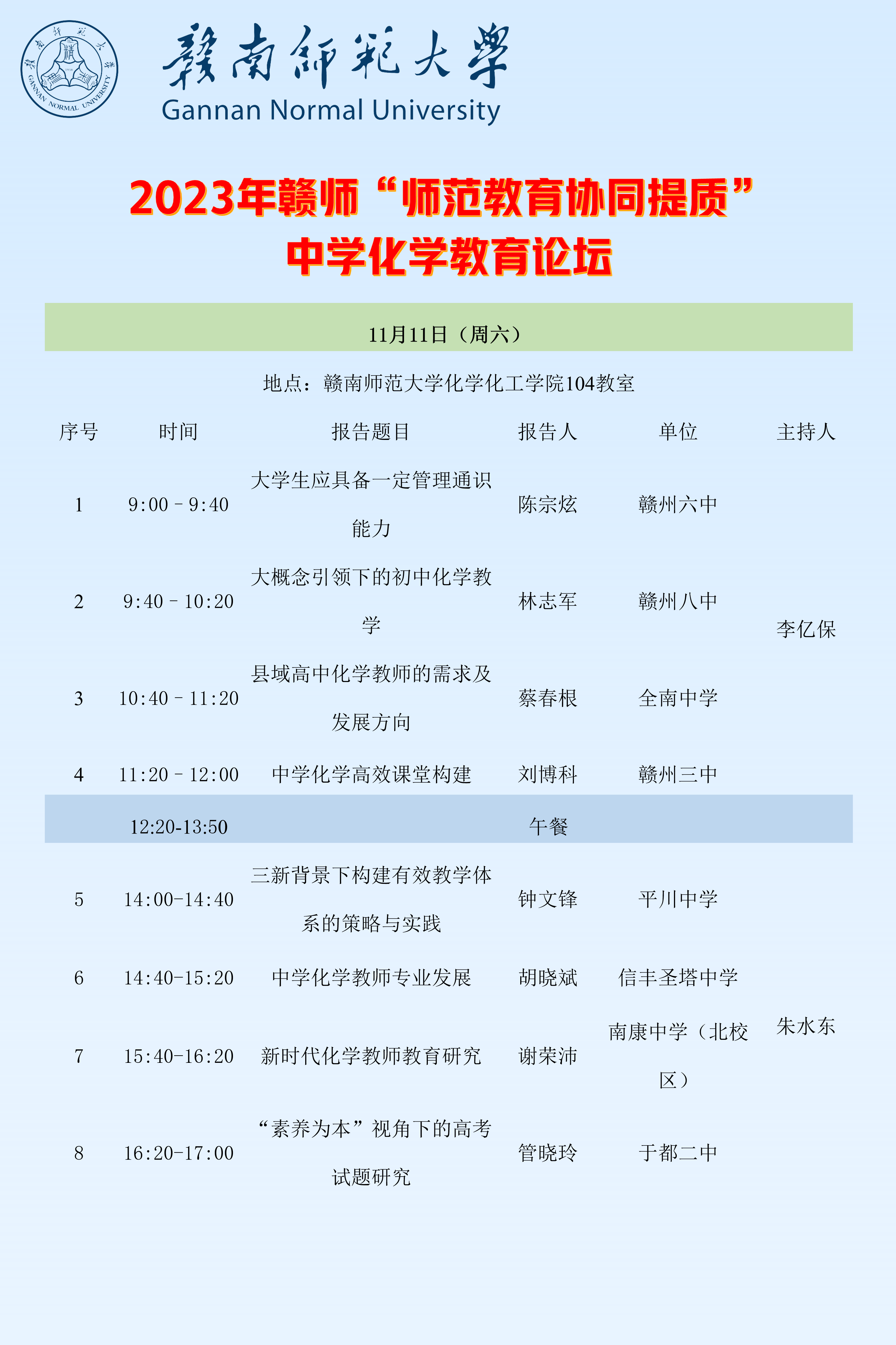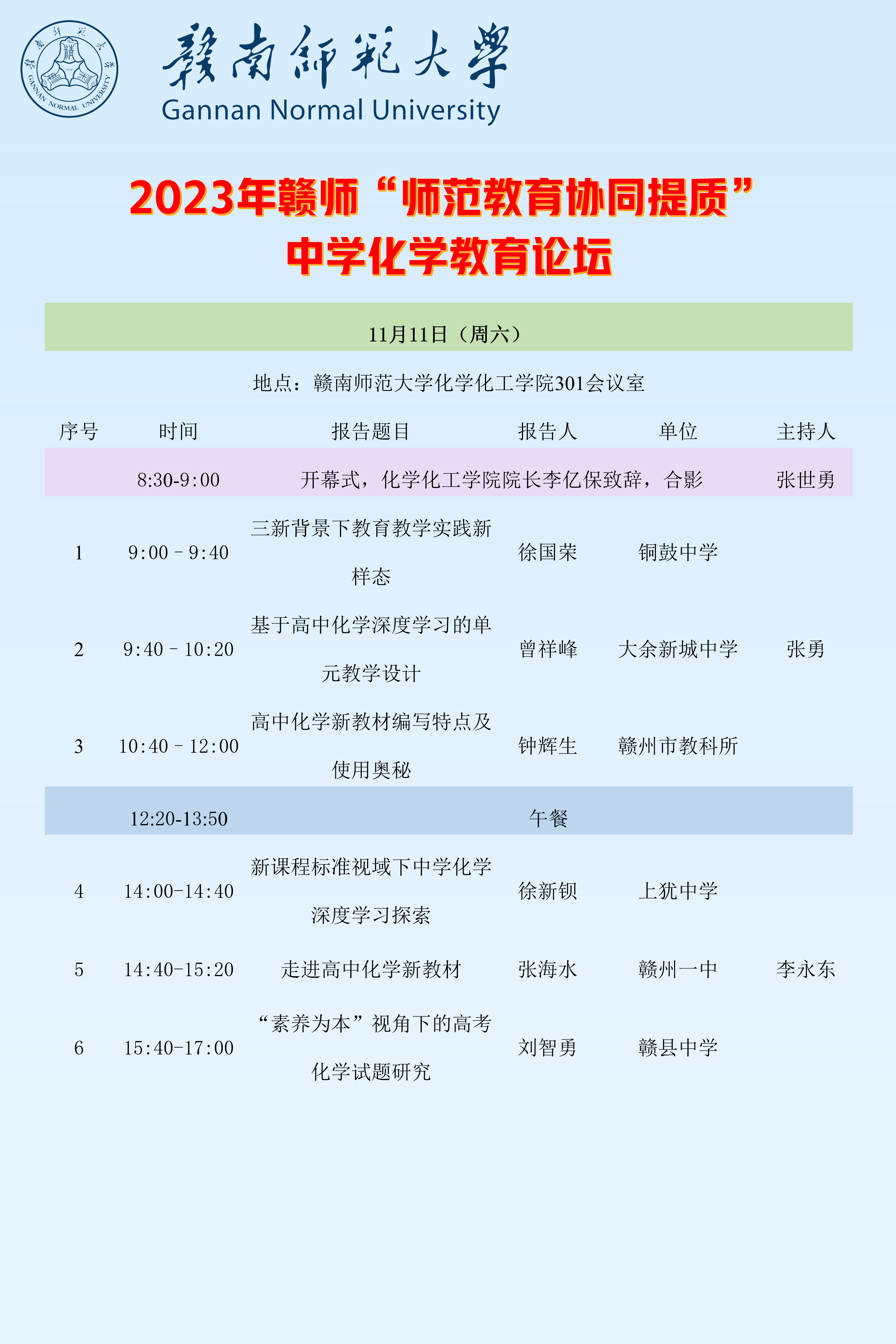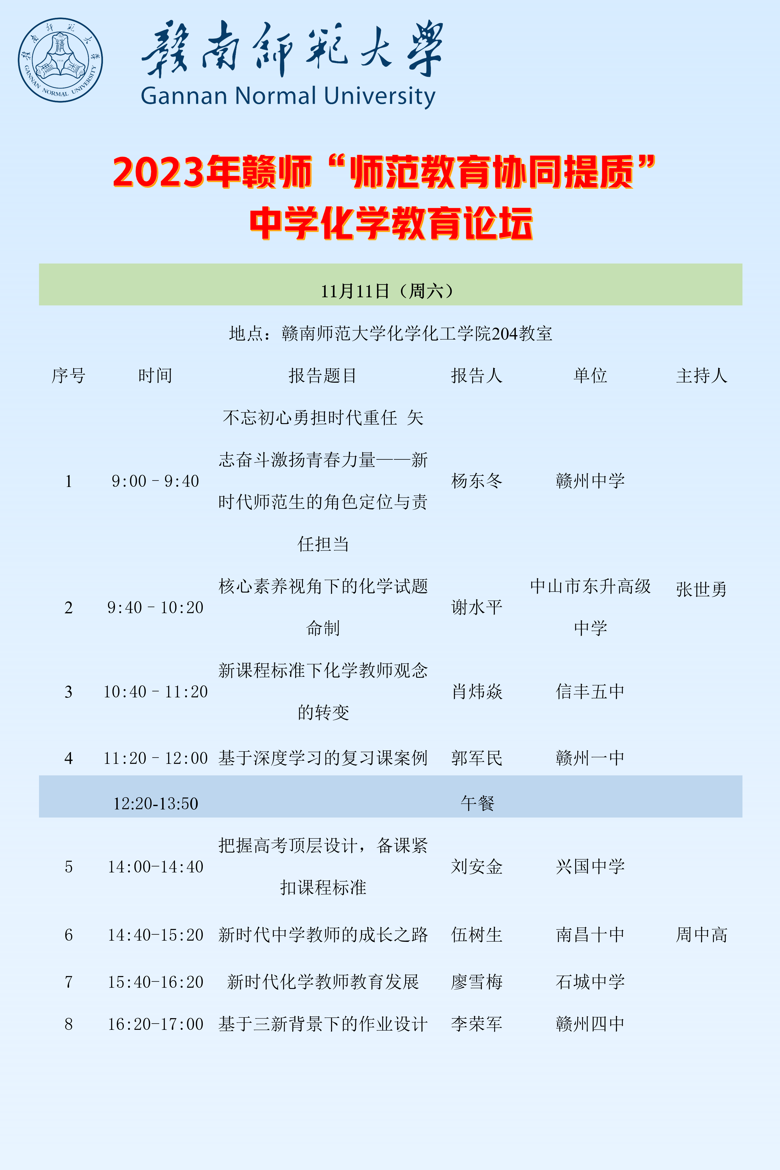 报告名称:2023年赣师“师范教育协同提质”中学化学教育论坛