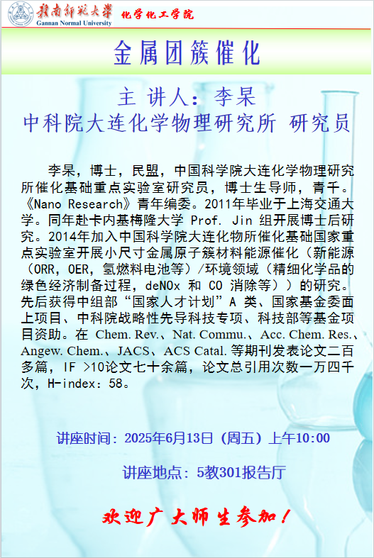 中科院大连化学物理研究所李杲研究员讲座:《金属团簇催化》